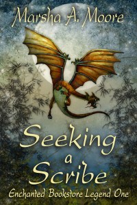 Marsha Moore’s Enchanted Bookstore Legends series is particularly appealing to me at the moment because I’ve spent the last few months working through the idea of dragons for my own series. I’ve discovered that dragons are surprisingly complicated! I found myself wrestling with all sort of insolvable conundrums. For instance, I spent several weeks pondering wings. If dragons have wings, what skeletal structure do the wings attach to inside their bodies? Annoyingly, we don’t seem to have any real-life six-limbed reptiles to work with as models. I spent a ridiculous amount of time obsessing over what’s actually a fairly silly question. (I mean … they’re magic, right? If they have wings, they have wings ’cause they’re magic.) So then … retractable claws, like a lion, or fixed claws, like an eagle or a crocodile? (You can see how hung up I got on minutia.)